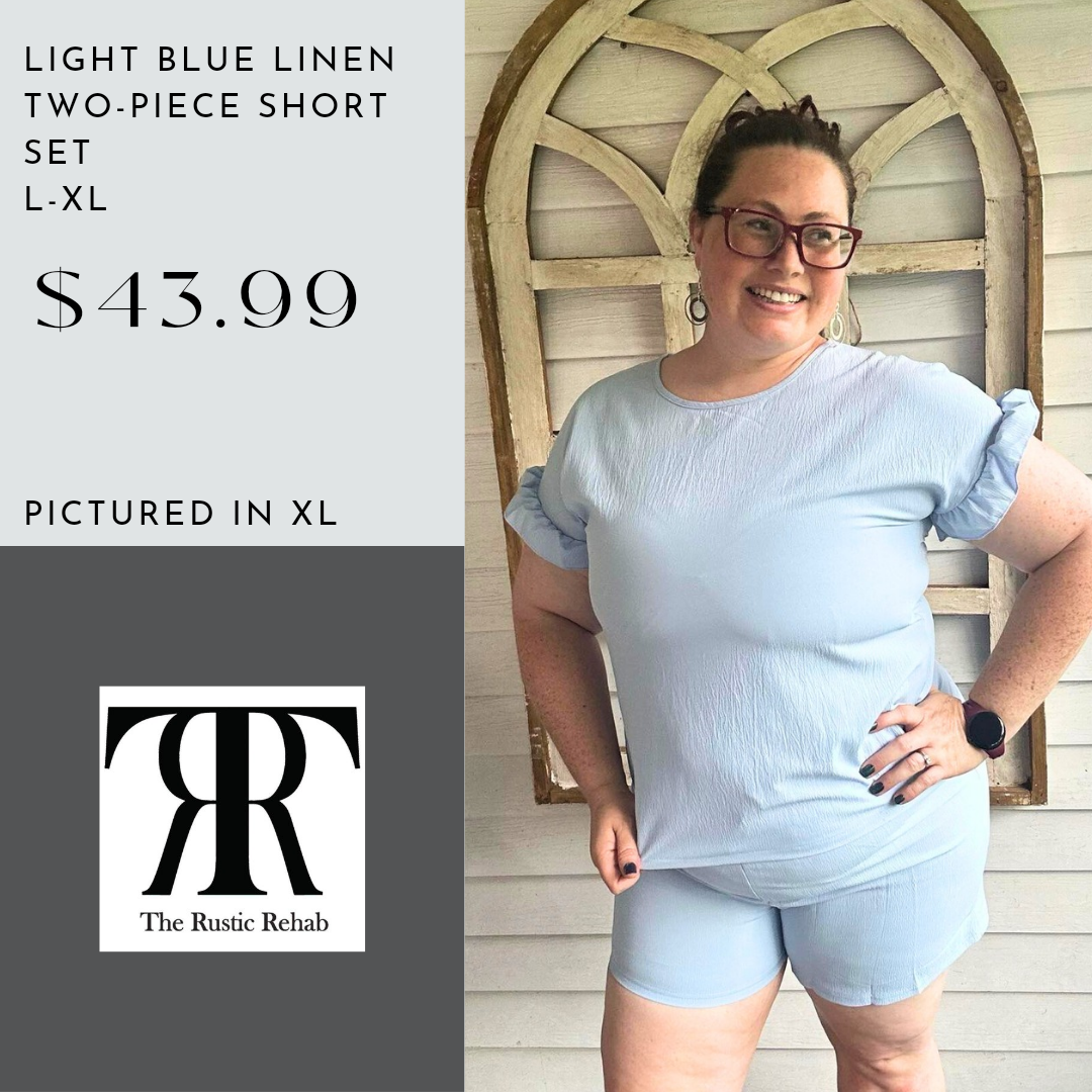 Light Blue Linen Two-Piece Short Set