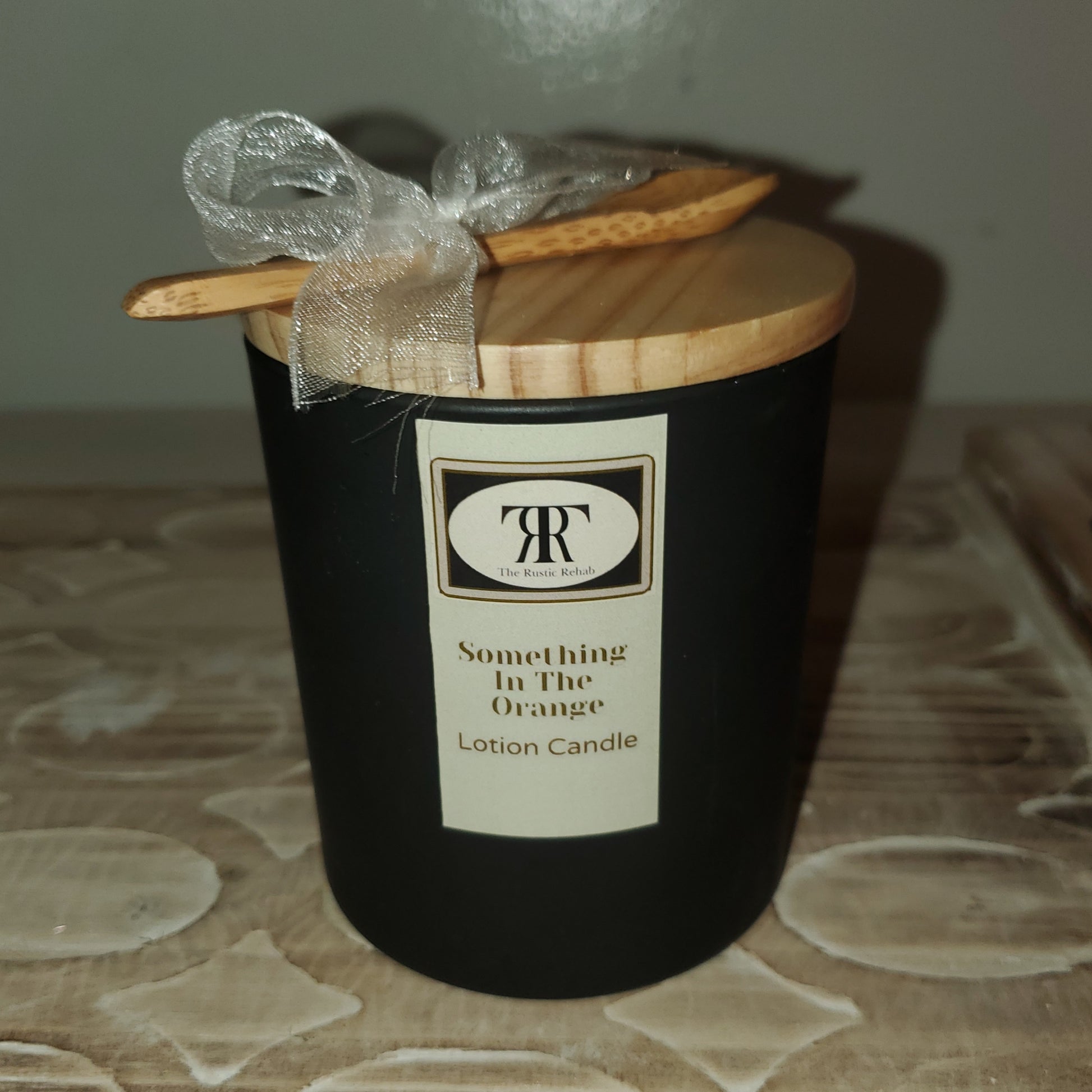 Lotion candles made with fragrance and/or Essential Oils, Soy Wax, Shea Butter, Coconut Butter, Coconut Wax. Light the Candle, when wax pools blow out candle, take bamboo spoon and spoon melted oil onto skin. Massage in and enjoy the smooth warm lotion on skin. Wonderful for dry skin.