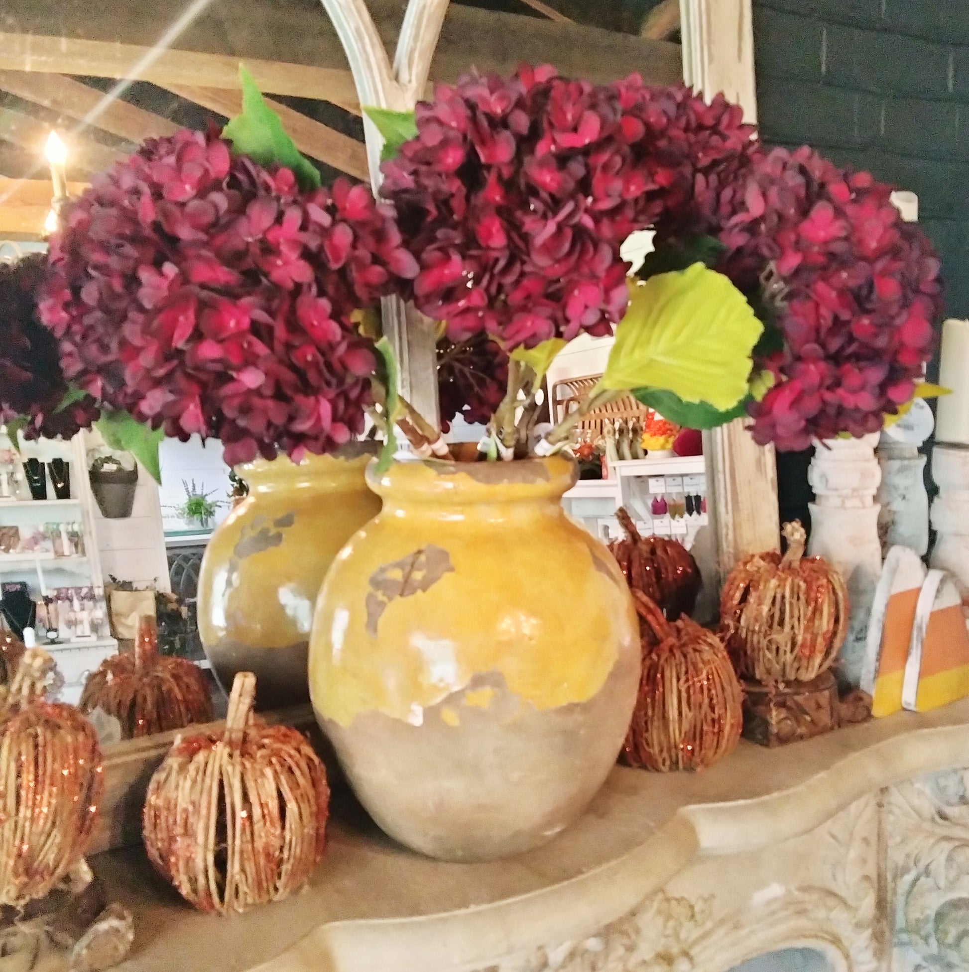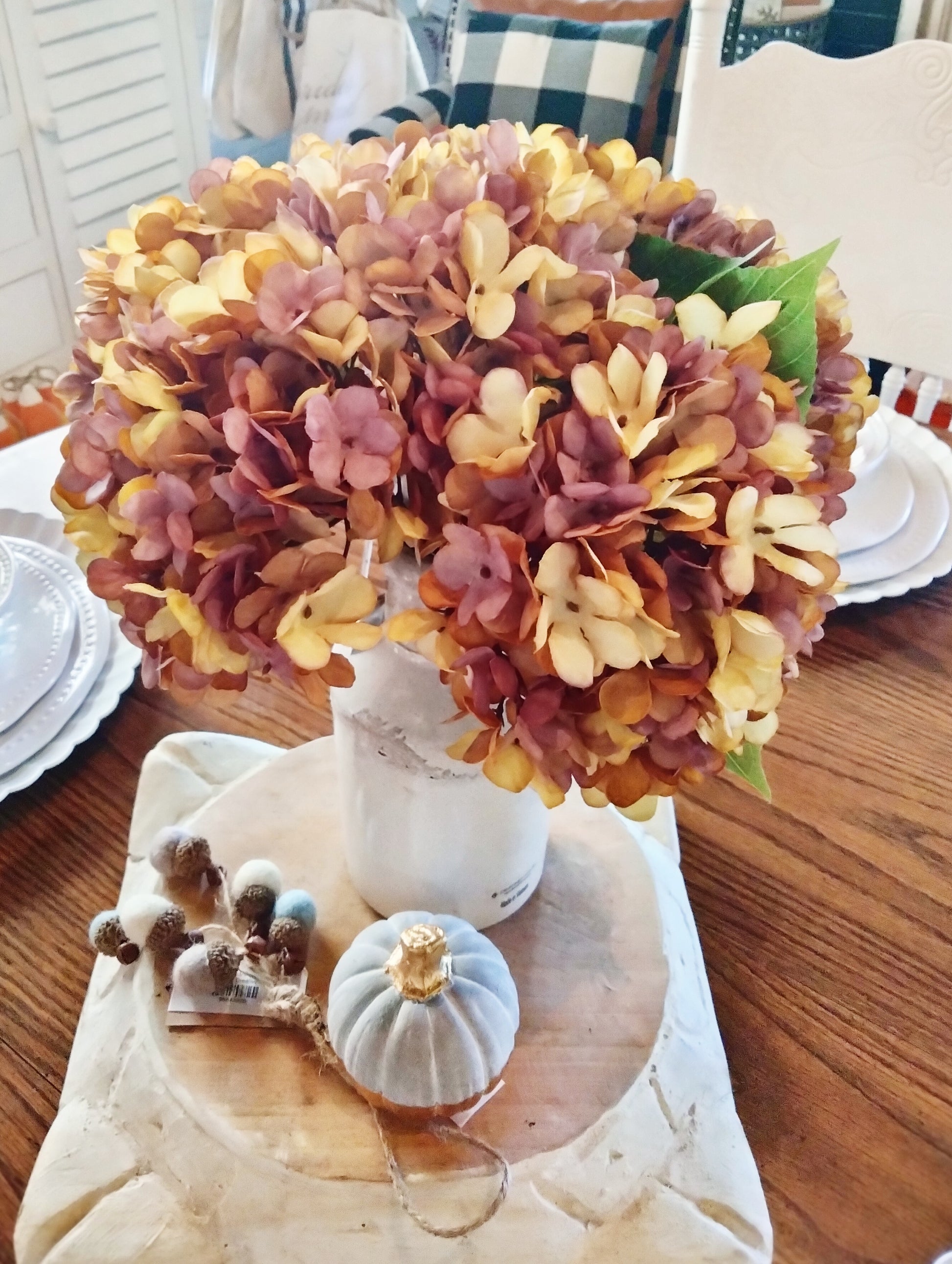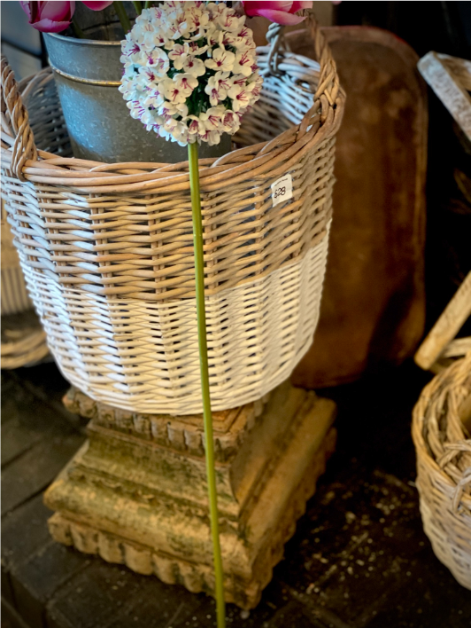 Single green stem, white hydrangea exhibiting a cluster of white flowers