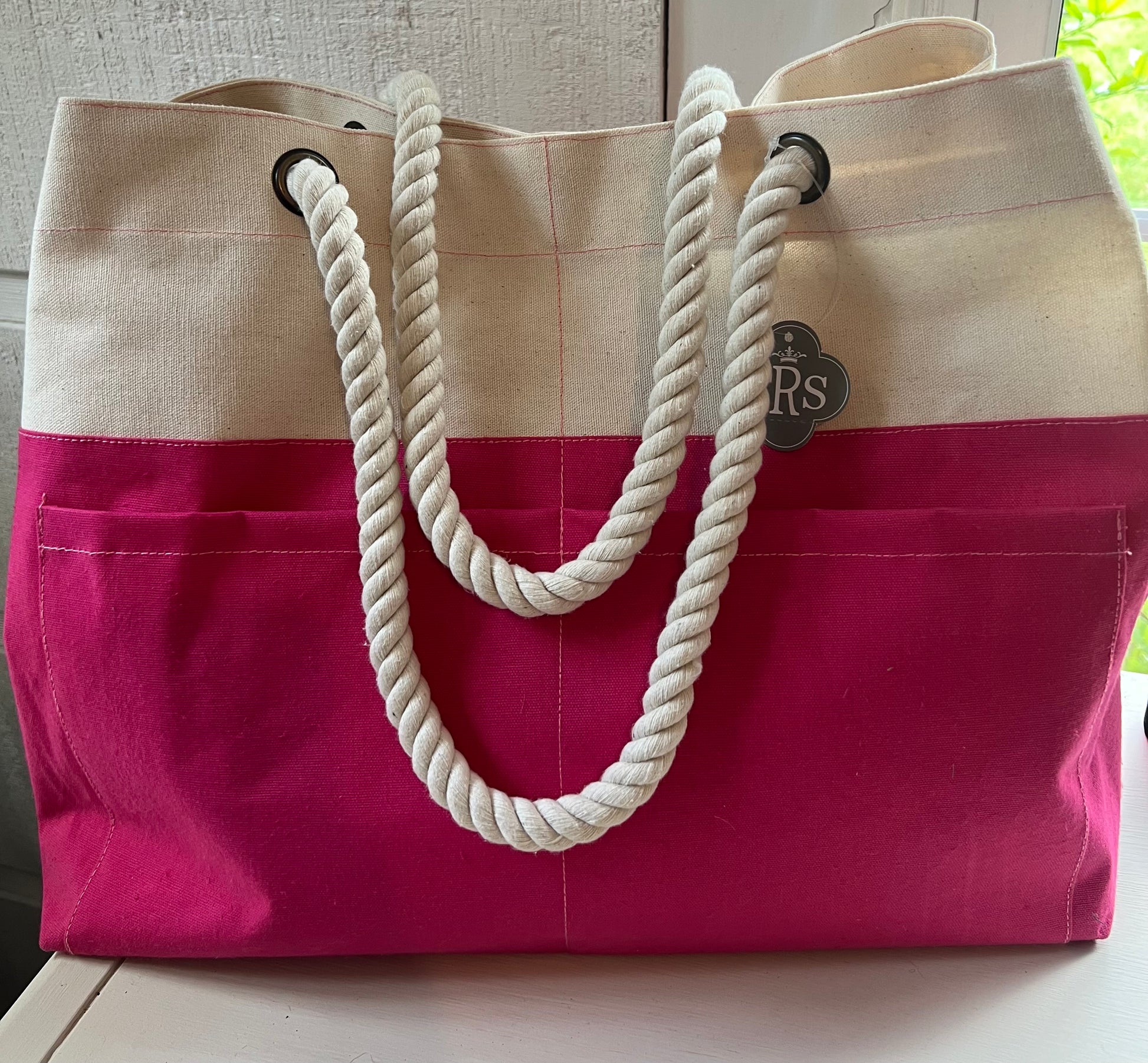 Pink Canvas Tote With Rope Handles