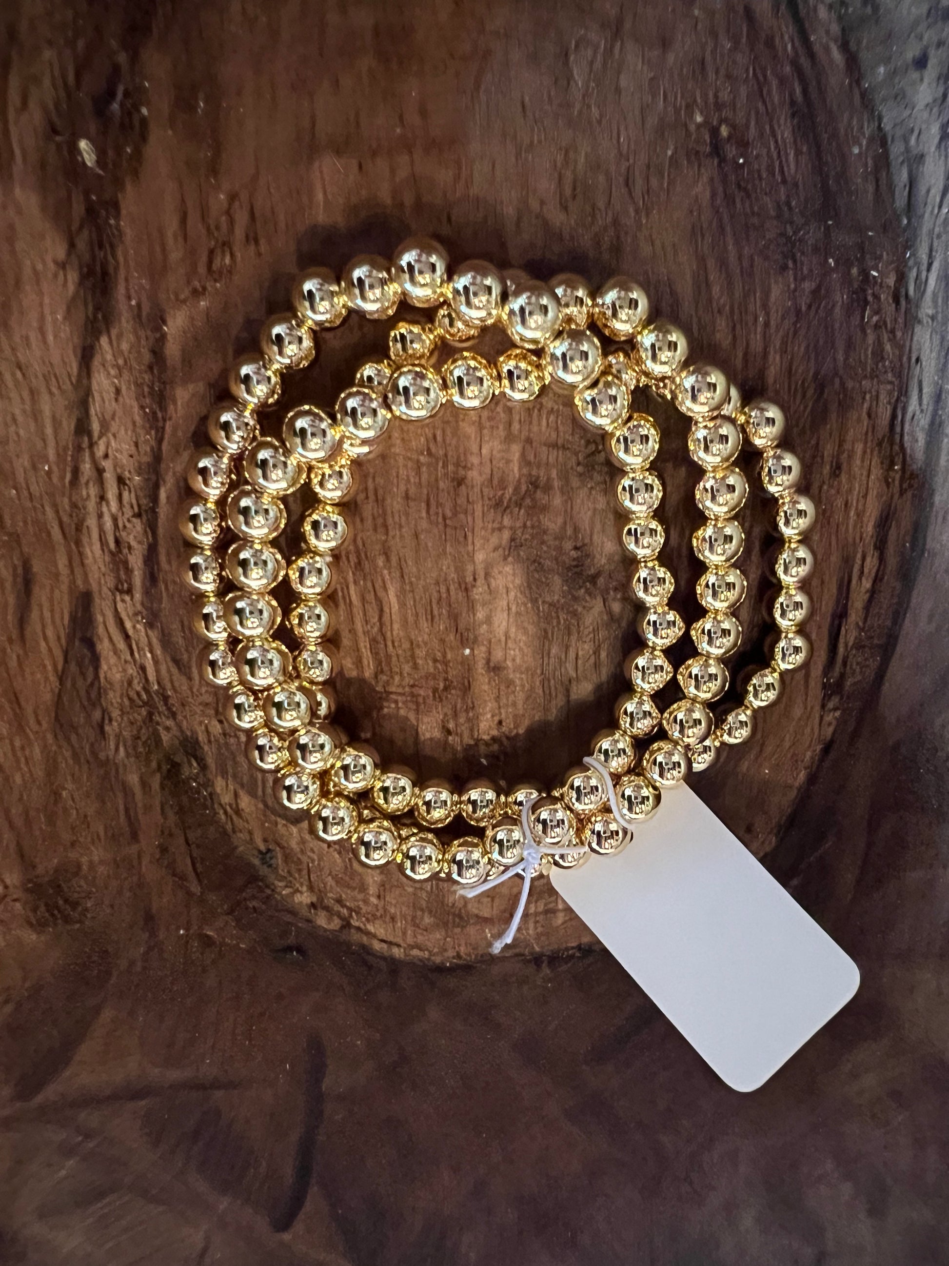 Triple stack of stretch bracelets in 18k plated gold or sterling silver